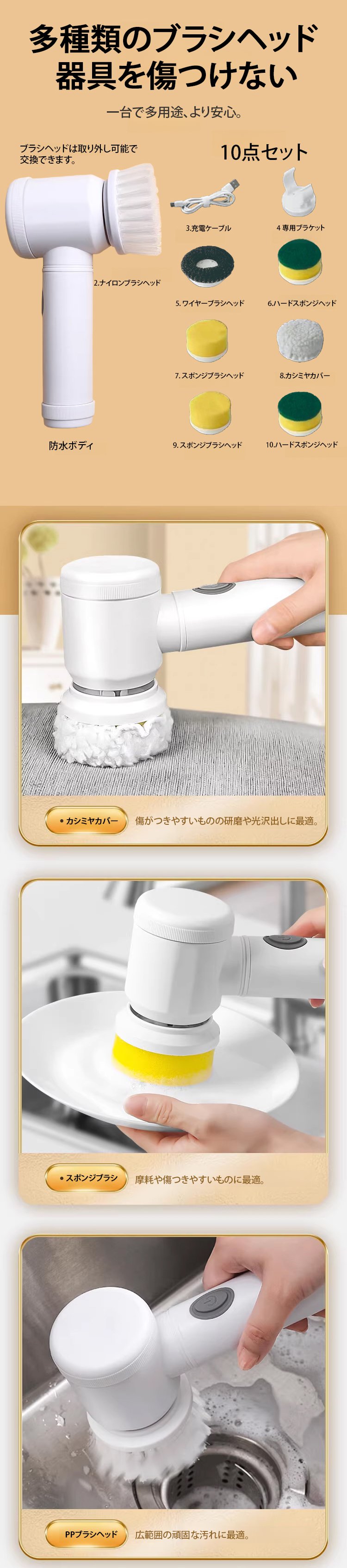 【10点セット】多機能電動クリーニングブラシ